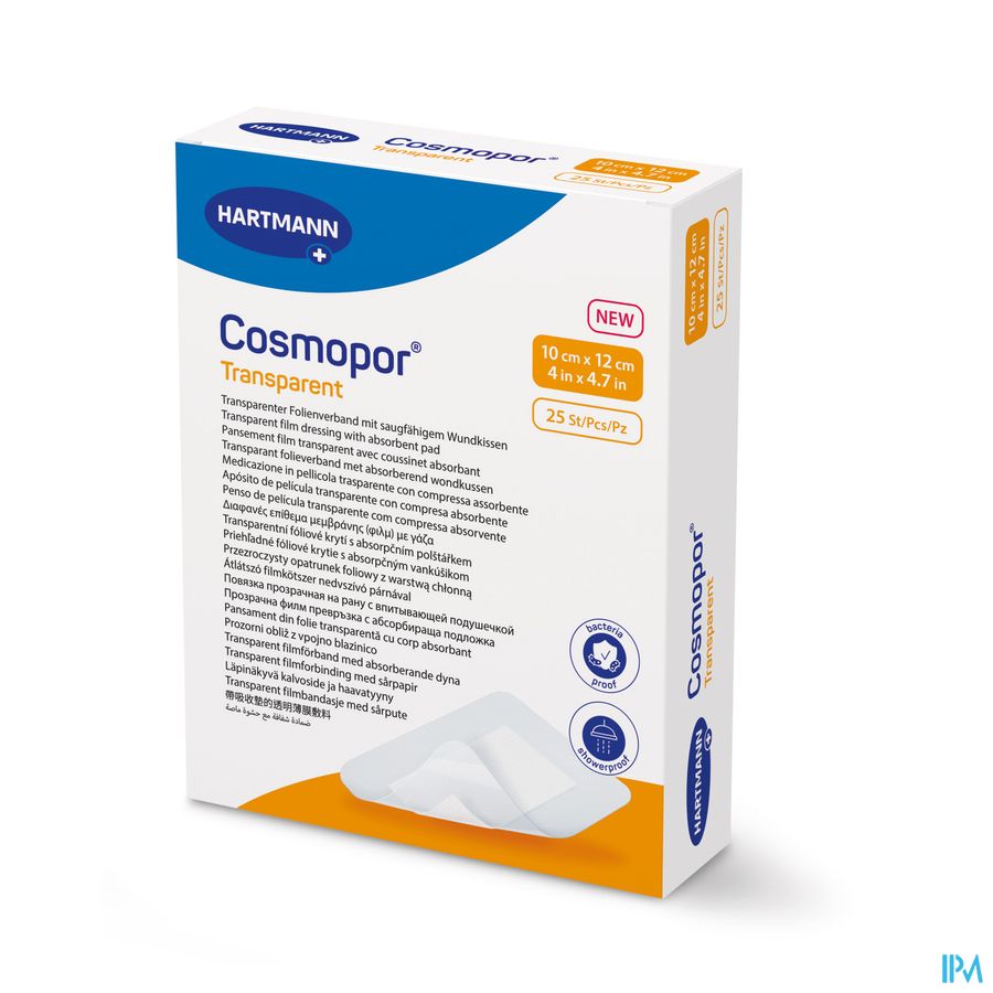 Cosmopor® Transparent est un pansement stérile, autocollant et transparent avec un tampon absorbant pour la plaie, composé...