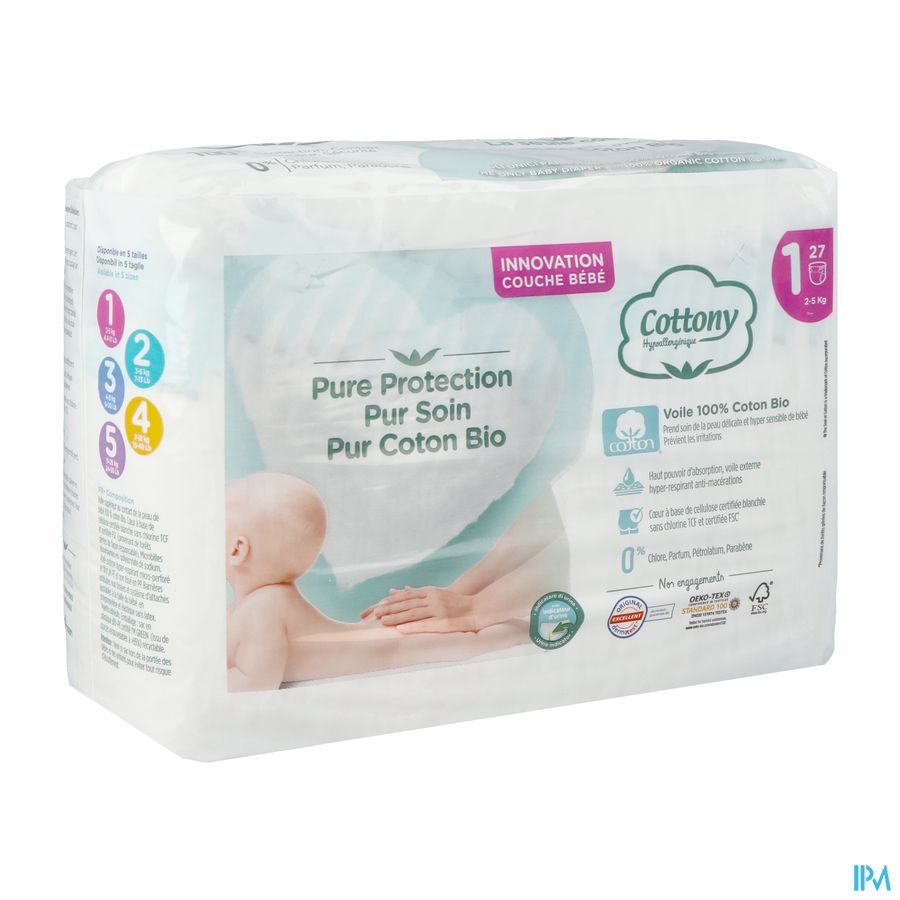 La ligne Cottony est née de l'expérience de l'entreprise familiale italienne Corman SpA. Après des années de recherche, la ligne propose aujourd'hui des couches innovantes dont la couche supérieure, en contact avec la peau de l'enfant, est en coton 100 % biologique, extrêmement doux et délicat. Une fibre qui aide à prévenir les irritations et qui est donc idéale pour les peaux sensibles des bébés ; très absorbante grâce à l'âme en duvet de cellulose TCF (totally chlorine-free), blanchie sans chlore, respirante et inodore, testée dermatologiquement.