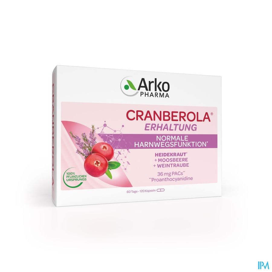 Cranberola 36 mg gélules est un complément alimentaire à base de Cranberry, d'extrait de Raisin et d'extrait de Bruyère, apportant 36 mg de proanthocyanidines totaux (PAC) par jour. La Bruyère contribue à une fonction normale d'élimination au niveau des voies urinaires.
