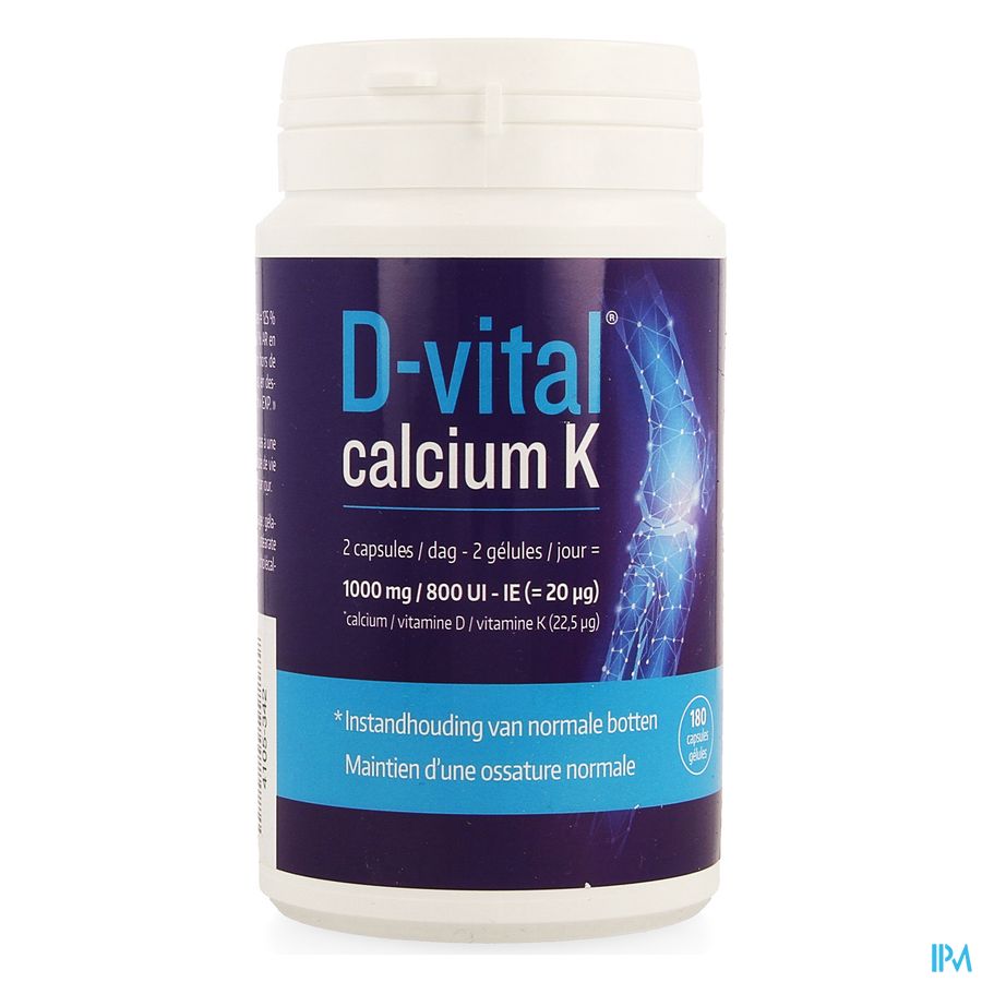 D-vital Calcium K Caps 180 est un complément alimentaire disponible en pharmacie. Il ne peut se substituer à un mode de vie sain et à une alimentation variée et équilibrée. Ne prenez pas plus que la dose quotidienne recommandée indiquée sur l'emballage. Demandez conseil à votre pharmacien. Tenir hors de portée des enfants.