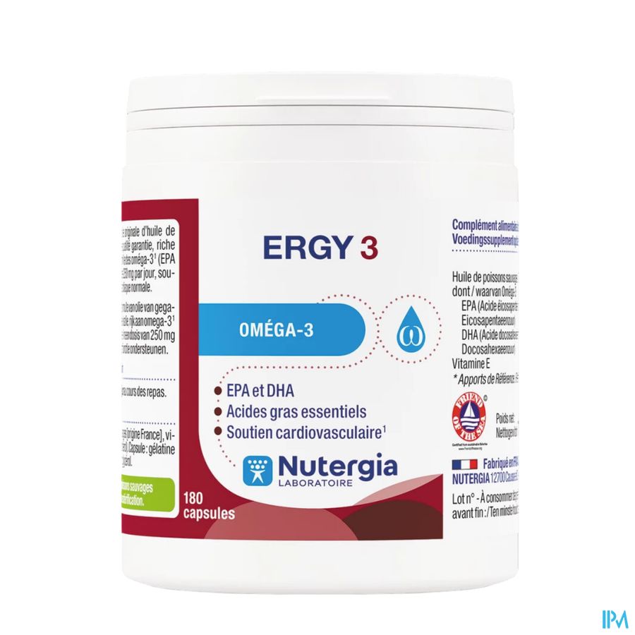 Ergy 3 Caps 180 est un complément alimentaire disponible en pharmacie. Il ne peut se substituer à un mode de vie sain et à une alimentation variée et équilibrée. Ne prenez pas plus que la dose quotidienne recommandée indiquée sur l'emballage. Demandez conseil à votre pharmacien. Tenir hors de portée des enfants.
