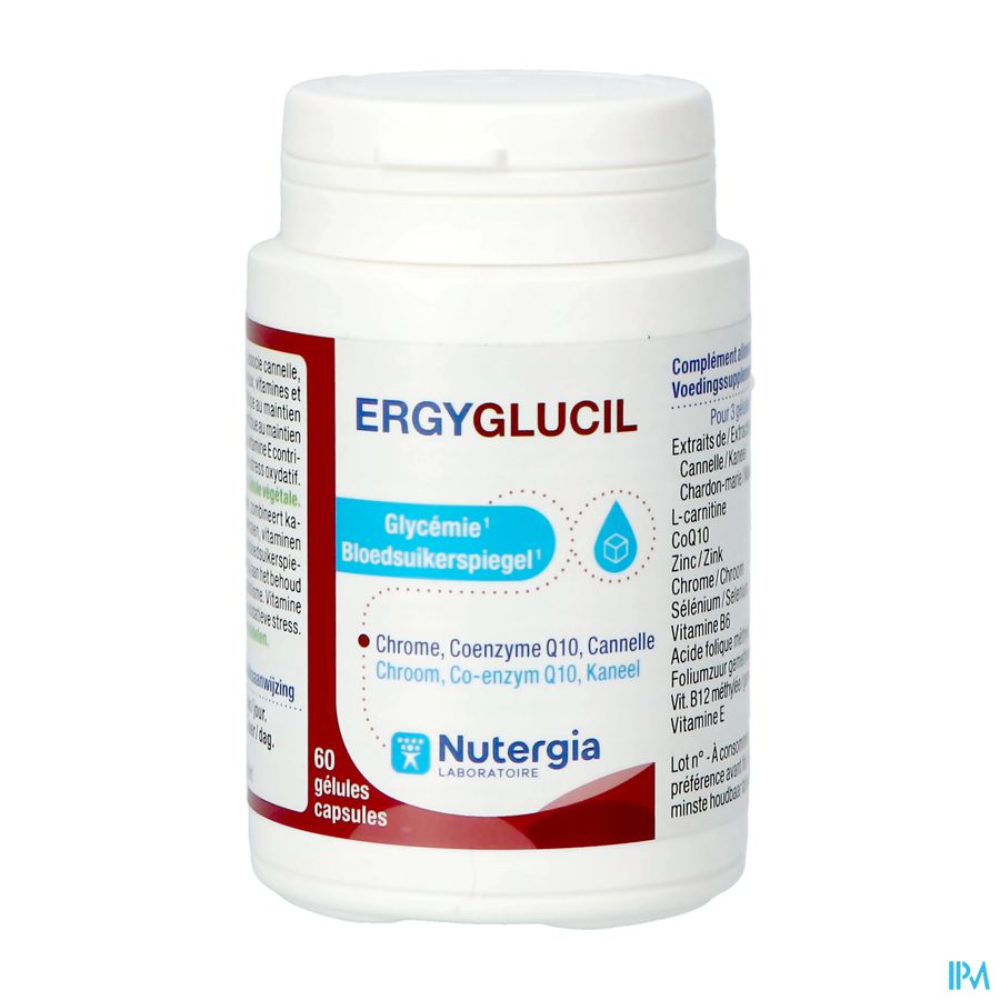 ERGYGLUCIL est une synergie innovante de 11 actifs clés qui apporte une solution experte aux troubles du métabolisme des sucres , grâce notamment au chrome qui participe au maintien d'une glycémie normale et dont l'action est complétée par le zinc qui soutient le métabolisme des sucres.