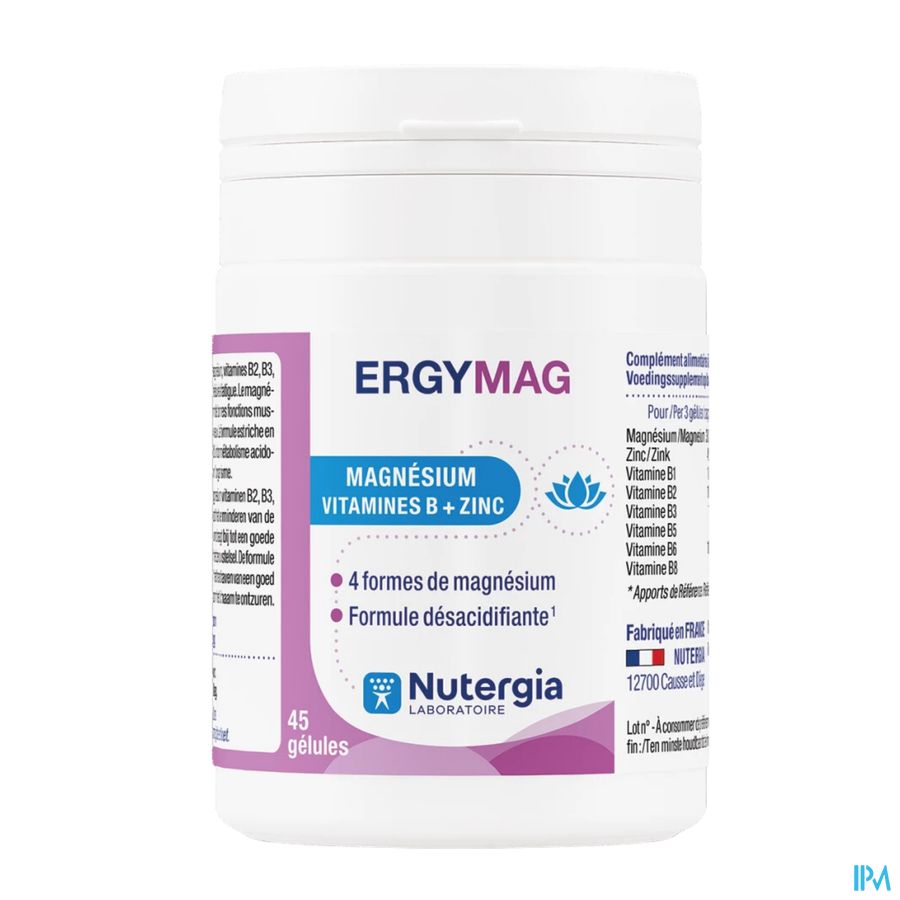 Ergymag Caps 45 est un complément alimentaire disponible en pharmacie. Il ne peut se substituer à un mode de vie sain et à une alimentation variée et équilibrée. Ne prenez pas plus que la dose quotidienne recommandée indiquée sur l'emballage. Demandez conseil à votre pharmacien. Tenir hors de portée des enfants.