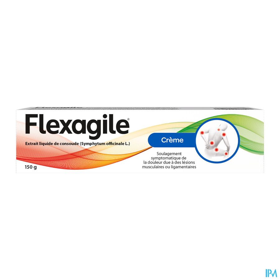 Flexagile crème contient 35,0 g d'extrait éthanolique liquide purifié à 60 % (v/v) de consoude (Symphytum officinale L.) [1:2], par 100 g de crème.