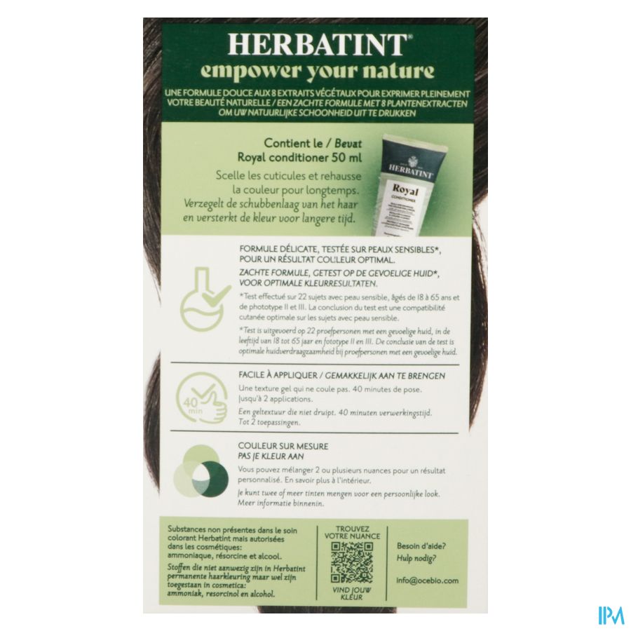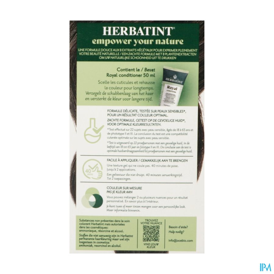 Herbatint est un gel de coloration permanente sans ammoniaque, enrichi de 8 extraits de plantes biologiques. Herbatint donne aux cheveux une couleur très naturelle et intense et couvre vos cheveux gris à 100% dès la première application. Vos cheveux prennent une couleur vive et éclatante et sont instantanément plus sains et naturellement beaux.
