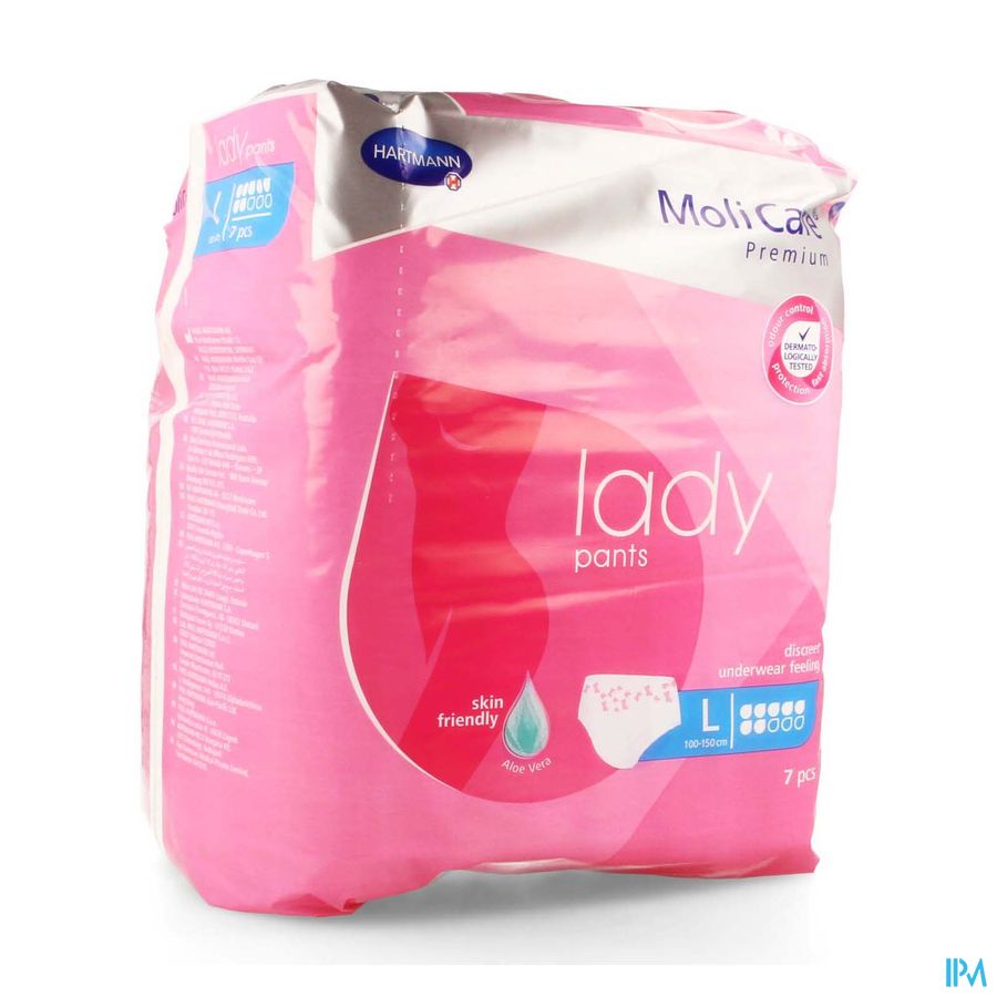 MoliCare,la meilleure protection en cas de fuites urinaires. Grâce à sa taille plus basse, la culotte douce et délicate pour la peau avec sa coupe anatomique se met et se retire comme un sous-vêtement normal. Matière douce et respirante. Sécurité optimale grâce à une absorption rapide, un système antifuites et un neutralisateur d'odeurs. testé dermatologiquement. Le coussin absorbant composé de 3 couches absorbe le liquide en profondeur pour que la peau reste saine et sèche Garantit un état cutané sain grâce à son effet antibactérien et tampon qui permettent de maintenir une valeur pH neutre à la peau de 5,5. Testé dermatologiquement. La couche supérieure douce contient également de l'aloé vera pour un effet apaisant.