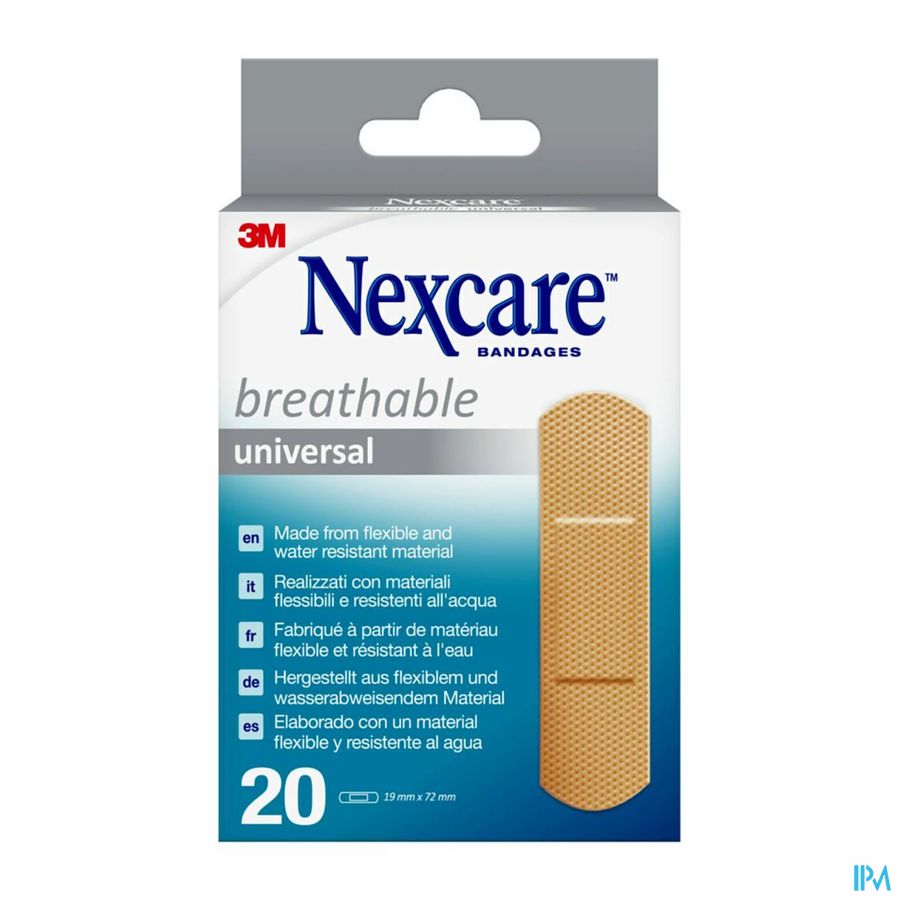 Le pansement qui convient à tous les cas : Grâce à leur application universelle, les pansements respirants universels Nexcare™ ont leur place dans l'armoire à pharmacie de tout foyer. Le pansement respirant et résistant à l'eau protège les plaies contre la contamination (barrière mécanique). La compresse ne se colle pas aux blessures, ce qui permet un retrait facile. Matériau extensible et conformable qui s'adapte à la forme du corps. Utilisation confortable.