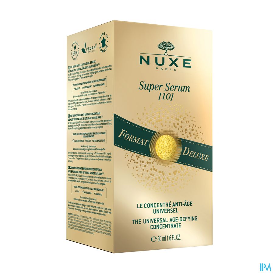 Fusion des expertises du Laboratoire NUXE sur les huiles végétales et les soins anti-âge, Super Serum [10] est le soin essentiel de toutes les routines anti-âge, pour toutes les peaux. NUXE utilise pour la première fois dans ce concentré anti-âge universel une encapsulation micro-fluidique : sa formule à l'Acide Hyaluronique naturel est infusée de milliers de micro-billes d'Huiles Végétales fractionnées.