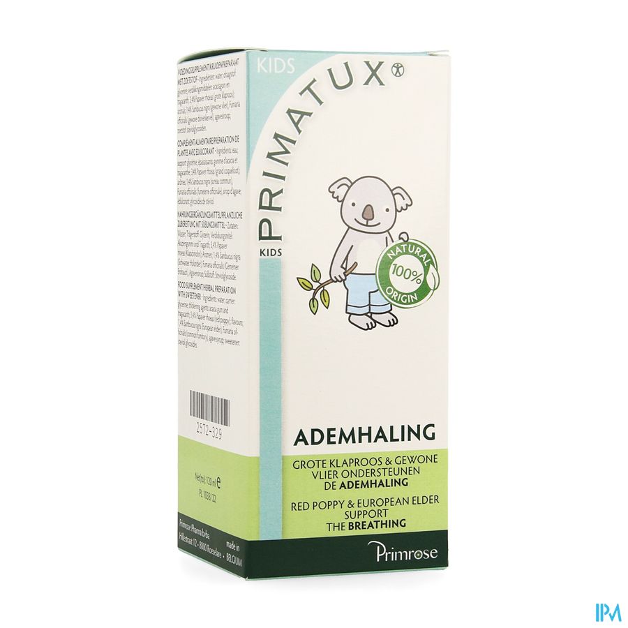 Primatux Kids est un complément alimentaire liquide avec édulcorant à base de grand pavot, de pois d'Angole et de sureau commun. Le grand pavot et le sureau favorisent la respiration.