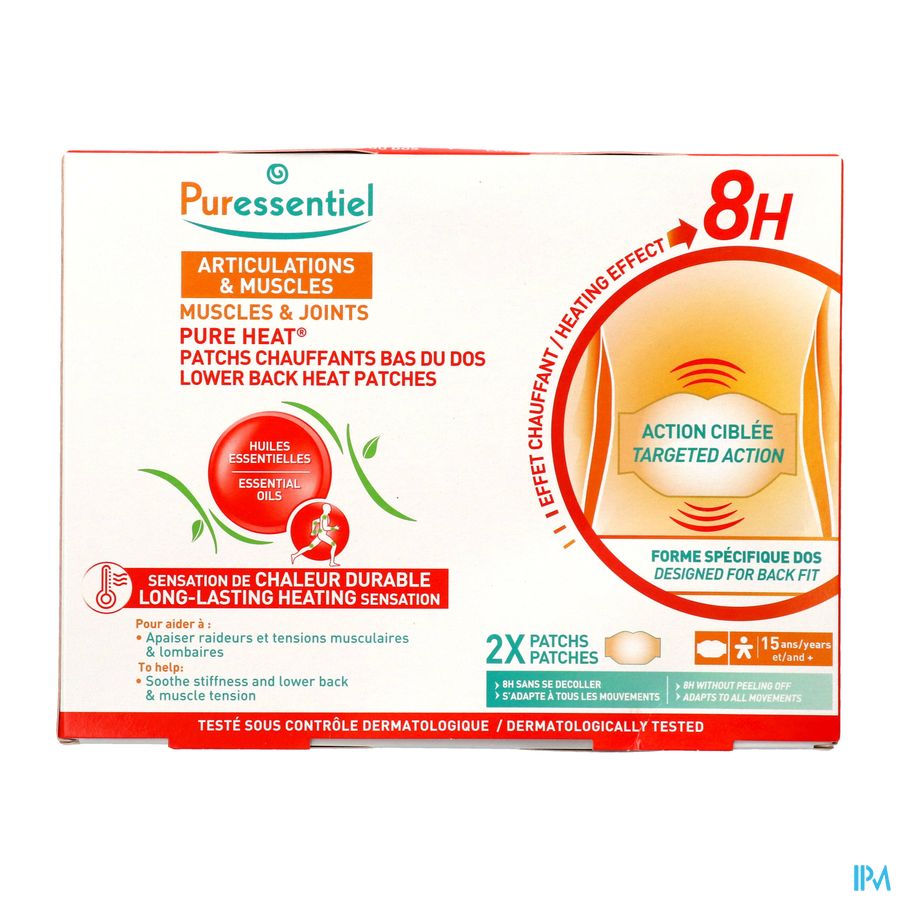 Grâce à sa forme spécialement développée pour la zone lombaire, les Patchs chauffants "Bas du dos" Puressentiel aident à décontracter, apaiser, soulager les tensions musculaires et lombaires. Formulés à base d'actifs 100% d'origine naturelle, associant 14 huiles essentielles (Cajeput, Camomille romaine, Clou de girofle, Eucalyptus, Gaulthérie couchée, Genévrier, Lavandin, Marjolaine, Menthe poivrée, Niaouli, Noix de muscade, Pin,Romarin, Térébenthine) et du capsicum, ils procurent une sensation agréable de chaleur pendant 8 heures, qui favorise la décontraction du muscle. Les Patchs chauffants "Bas du dos" sont sans odeur. Adhésifs, souples et discrets, ils s'adaptent à tous les mouvements sans se décoller.