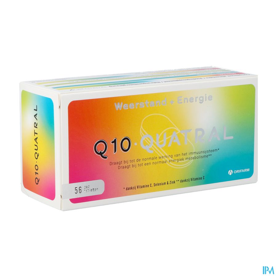 Q10 Quatral Caps 56 est un complément alimentaire disponible en pharmacie. Il ne peut se substituer à un mode de vie sain et à une alimentation variée et équilibrée. Ne prenez pas plus que la dose quotidienne recommandée indiquée sur l'emballage. Demandez conseil à votre pharmacien. Tenir hors de portée des enfants.