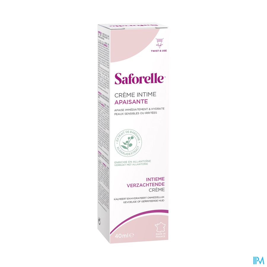 La Crème Apaisante Intime Saforelle, enrichie en Bardane et en Allantoïne, calme et soulage immédiatement les irritations et les sensations d'inconfort liées aux désagréments intimes.