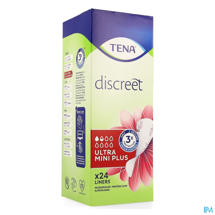Pour les petites fuites urinaires, le protège-slip absorbant TENA Discreet Ultra Mini est ultra fin mais super absorbant pour une protection discrète et sûre. De la même taille qu'un protège-slip classique, mais beaucoup plus absorbant, grâce à la technologie microPROTEX™ qui capture les odeurs et l'humidité instantanément. Le protège-slip fin et sûr pour les fuites urinaires prévient les fuites et les odeurs instantanément, vous procurant une sensation de fraîcheur toute la journée.