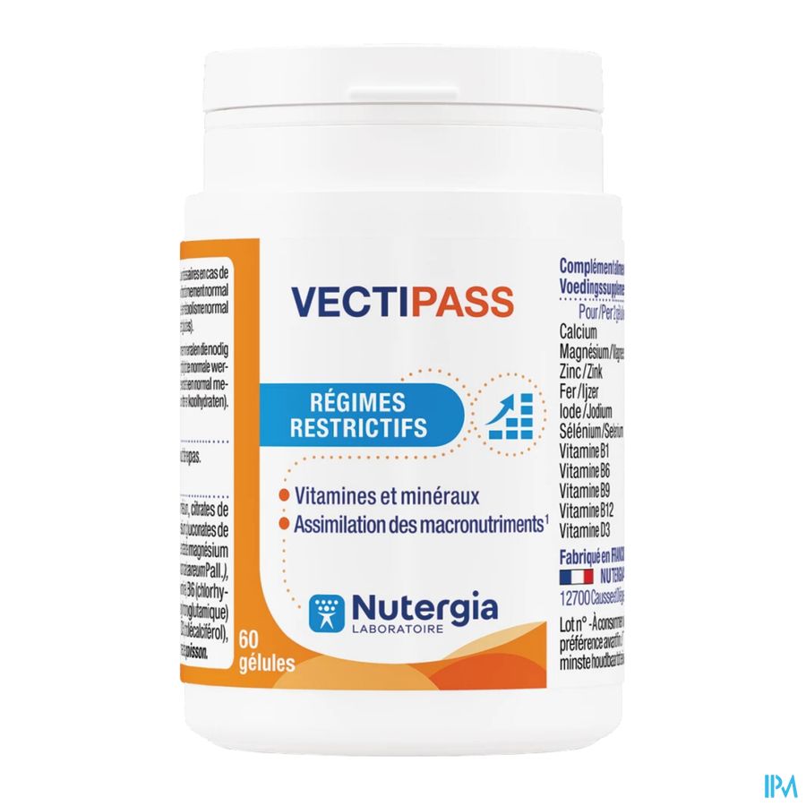 Vectipass Caps 60 est un complément alimentaire disponible en pharmacie. Il ne peut se substituer à un mode de vie sain et à une alimentation variée et équilibrée. Ne prenez pas plus que la dose quotidienne recommandée indiquée sur l'emballage. Demandez conseil à votre pharmacien. Tenir hors de portée des enfants.